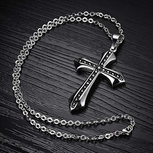 Caimeytie Collana da uomo con ciondolo Croce in acciaio inossidabile