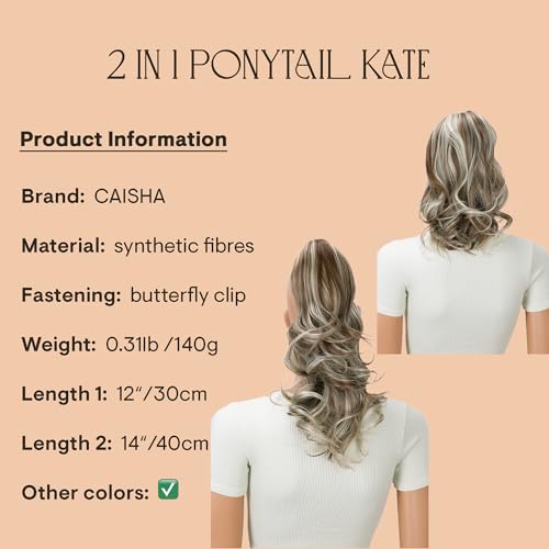 CAISHA 2 IN 1 30cm E 40cm Posticcio Treccia Portare I Codini Extensions Per I Capelli Voluminoso Ondulato Biondo Castano Mix H311