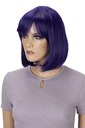 CAISHA by PRETTYSHOP Parrucca Bob Capelli Corti Cosplay Spettacolo Teatrale Fibra Sintetica Resistente Al Calore Liscio Viola Scuro SH032n