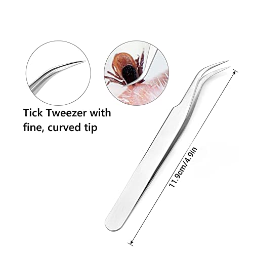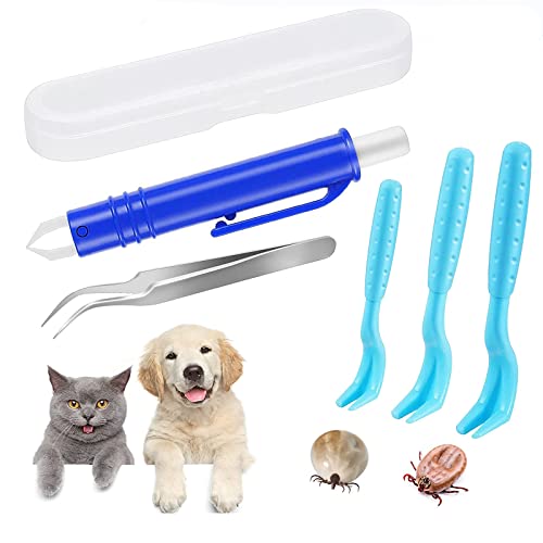 CaiTang 5 Rimuovere Zecche Set,Strumento per Rimuovere Le Zecche dai Cani Gatto,Pinza per Zecche Professionale,Pinzette per Zecche in Acciaio Inossidabile,Tick Gancio per Cani,Gatto