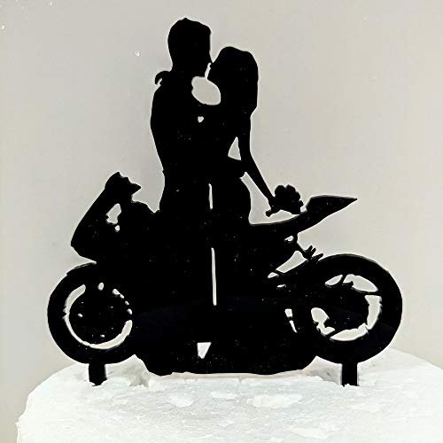 Cake Topper Acrilico Intagliato al Laser Sposi con Moto Made in Italy