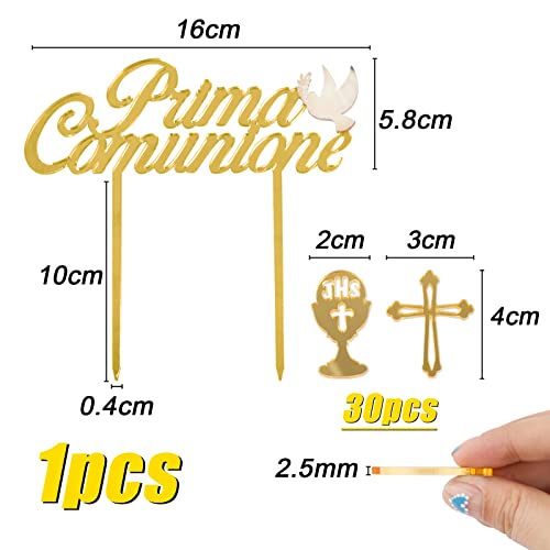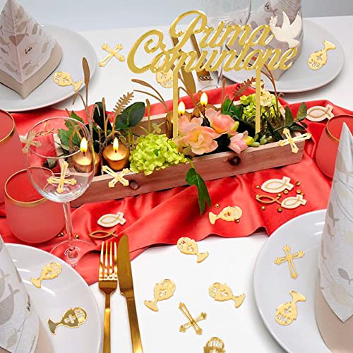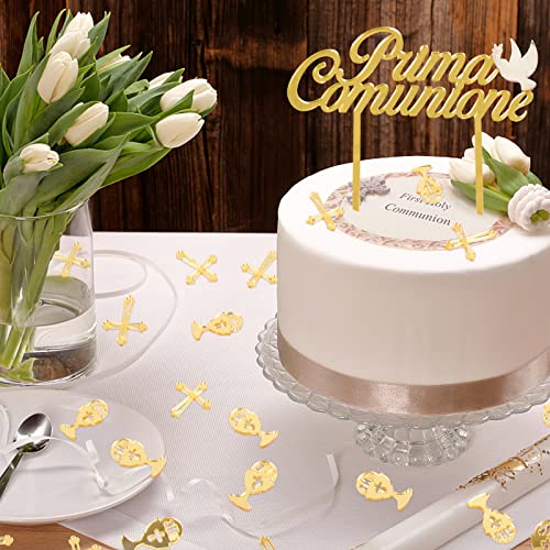 Cake Topper Prima Comunione Topper Torta Oro 30pz Coriandoli Croce Calice Addobbi Comunione per Bambini Decorazione Festa Torta Cupcake Partito