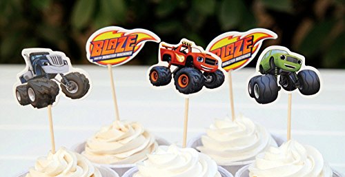 CUP CAKES - Decorazioni a bastoncino per cupakes, con figurine della serie Blaze e le megamacchine, ideali per torte di compleanno per bambini e decorazioni da tavola, 24 pezzi (etichetta in lingua italiana non garantita)