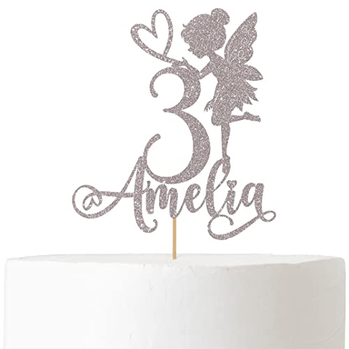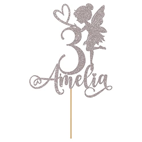 CAKESHOP Topper per torta di compleanno, con glitter, personalizzabile con qualsiasi colore, nome ed età, decorazione per torta, motivo: fatina, per 1°, 2°, 3°, 4°, 5°, 6°, 7°, 8°, 9°, 10° 16° e 18° compleanno, colore: argento