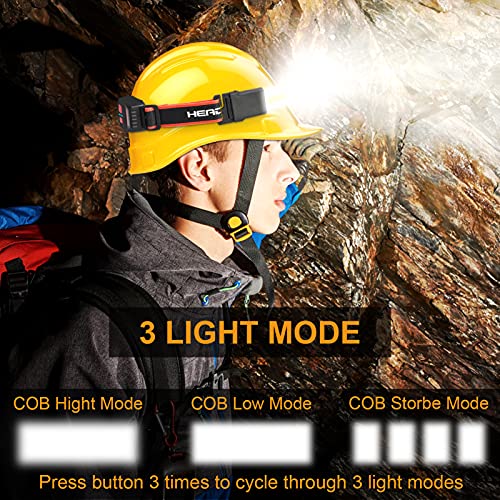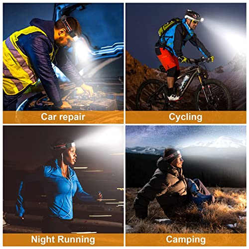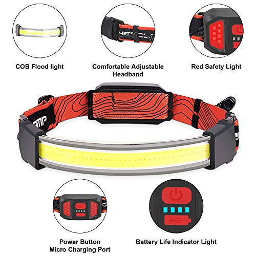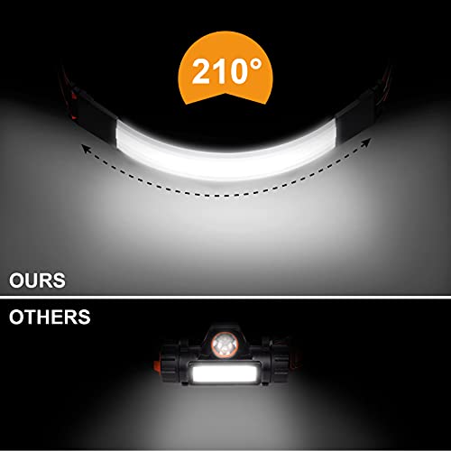 Calager Lampada Frontale LED, USB Ricaricabile impermeabile Lampada, Illuminazione a 210° 500 Lumen Faro COB con luce rossa, 3 modalità Lampada frontale per il campeggio, la corsa, l'escursionismo