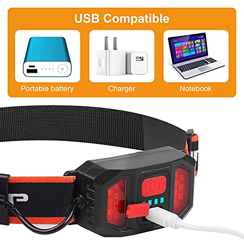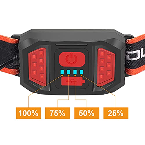 【Torcia frontale a LED ricaricabile】- Batteria ricaricabile integrata di grande capacità da 1200 mAh, il faro luminoso e durevole durerà a lungo per un uso continuo. 4 display mostreranno la potenza della batteria, che può ricordarti di caricarla in caso di torcia del proiettore scarica.