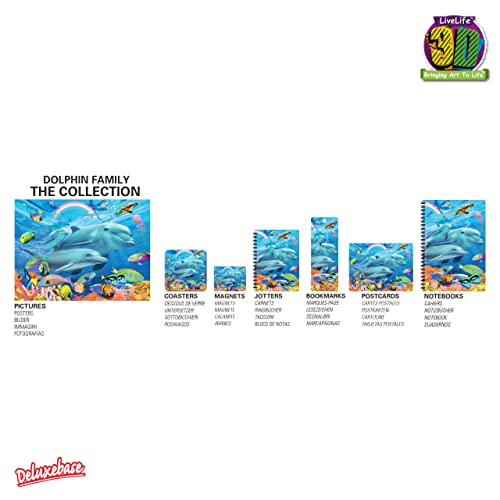 Calamita 3D LiveLife - Famiglia di Delfini di Deluxebase. Calamita da Frigorifero 3D Lenticolare a tema Oceano. Decorazioni magnetiche per bambini e adulti con opera d'arte di Michael Searle