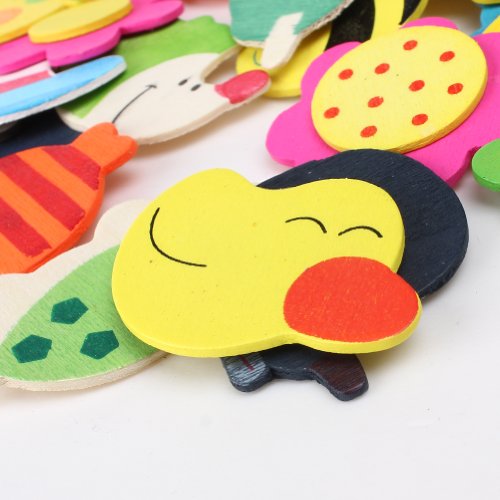 Calamite colorate per frigorifero, in legno, tema cartoon, ideali per bambini, confezione da 48 pezzi.