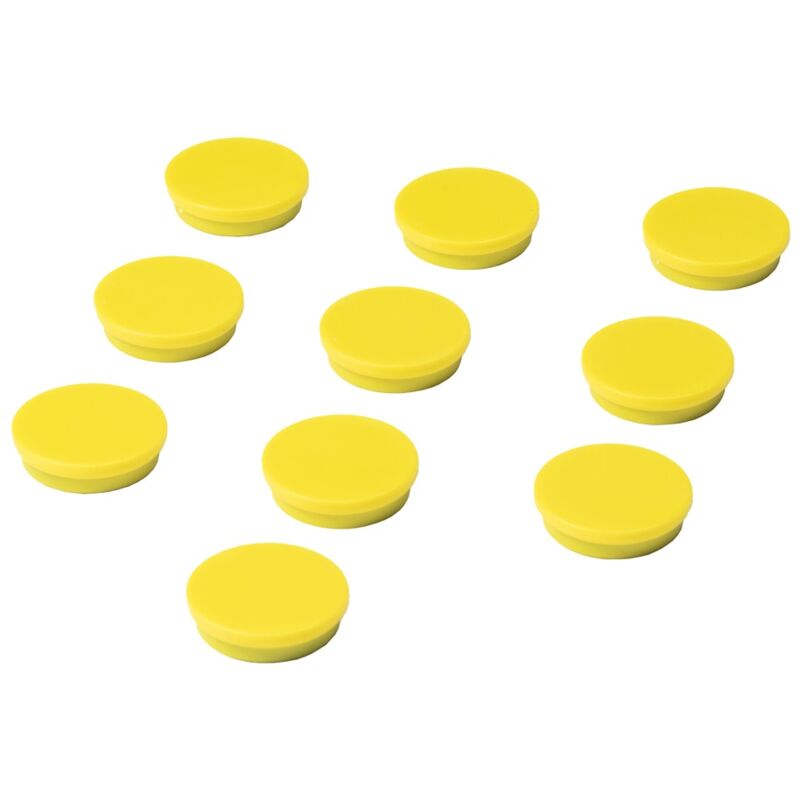 Calamite per lavagna 30 mm - Giallo - 10 pezzi Le nostre calamite per lavagna sono molto utili per appendere carte, promemoria e documenti importanti su qualunque tipo di superficie magnetica. Oltre a ciò, queste calamite magnetiche vengono utilizzate principalmente sulle le lavagne bianche, e naturalmente su superfici simili come la porta del tuo frigorifero per esempio. Questi magneti sono il prodotto Ideale per scuole, uffici e società sportive, ma sicuramente anche per l'uso domestico! Questa calamita é disponibile in diversi colori e dimensioni. Nota: per le lavagne in vetro sono necessarie delle calamite apposite per vetro extra resistenti. Specifiche del prodotto ✓ Misure: Ø 30 mm ✓ Potenza magnetica: 580gr/cm2 ✓ Set da 10 ✓ Colore: Giallo ✓ Adatto solo per lavagne bianche