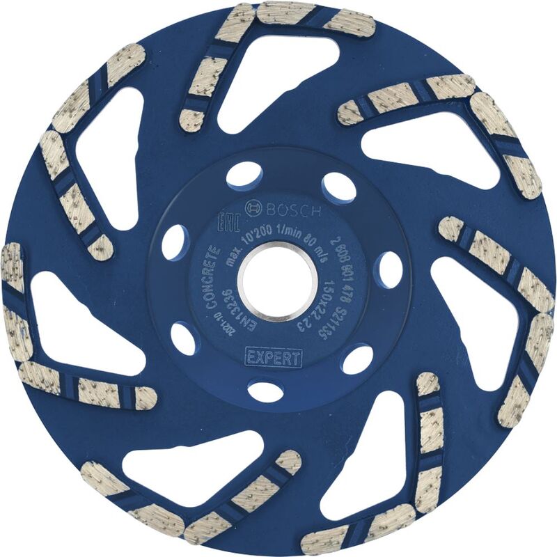Diamond Technology macinazione molto veloce con Bosch Diamond Technology, una matrice di diamanti e metallo su misura integrata nei nostri design avanzati. L'assunzione rapida della polvere dalle superfici di lavoro è essenziale per la velocità. L-segmenti i segamenti L servono a rimuovere rapidamente il materiale. Questa disposizione ottimizzata consente una macinazione aggressiva e garantisce che la polvere venga rimossa dalla superficie e che si raggiunga la massima efficienza.