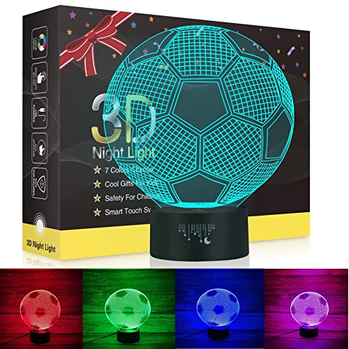 Calcio 3D Lampade, Illusione Ottica Luce Notturna, LED Decorazione Illuminazione Luce di Notte, 7 Colori Controllo Tattile USB Lampada Comodino Miglior Regalo di Natale di Compleanno per Bambini