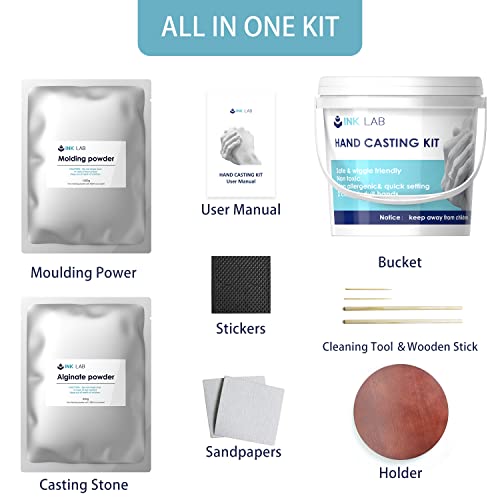 INK LAB Kit Calco Mani Coppia Kit Gesso per Stampi Mani 3D Comprende Accessori e Istruzioni Kit Stampo Mani Gesso per Coppia Famiglie Matrimonio Amici Adulti Bambini