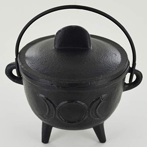 Calderone in ghisa con tre lune, medie dimensioni, accessorio magico per pozioni Wicca e neopaganesimo, idea regalo