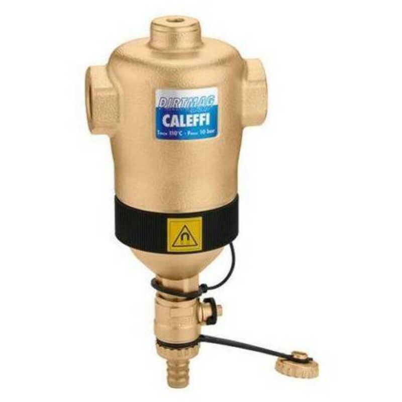 Defangatore con magnete. Corpo in ottone. Attacchi filettati femmina. Rubinetto di scarico con portagomma. Pmax di esercizio: 10 bar. Campo di temperatura: 0-110°C. Capacità di separazione particelle: fino a 5 um.(DianFlex)Misura: 3/4