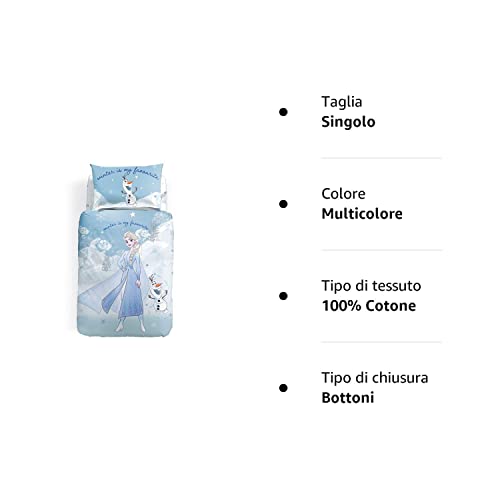 Caleffi 1004723 Cotone Disney Frozen Winter Completo Copripiumino per Singolo Letto, Multicolore