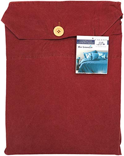 Caleffi - Completo-lenzuola Jeans Floreale Piazza e Mezza Bordeaux