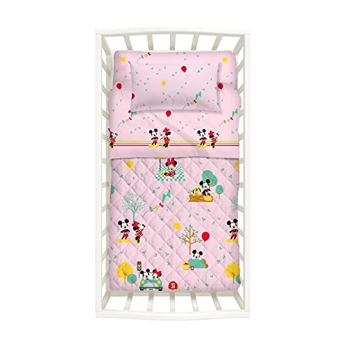 Caleffi Minnie&Mickey Completo Lenzuola, Cotone, Rosa, Baby, 79706, Disney
