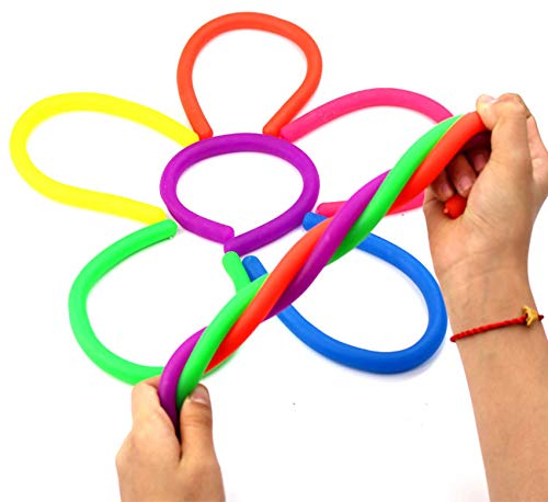 Confezione da 6 pezzi, produciamo giocattoli sensoriali elastici della migliore qualità, queste corde elastiche si estendono da 25 cm a 2,4 m, per un divertimento diverso. (Non avvolgere intorno al collo o utilizzare per limitare il flusso sanguigno).
