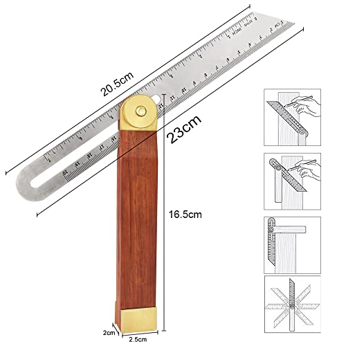 Calibro conico quadrato regolabile per carpenteria Smusso scorrevole Manico in legno duro da 9 pollici Righello con lama in acciaio inossidabile T Strumento per smusso con angolo smussato