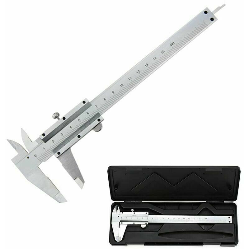 Caratteristiche Strumenti di misurazione precisi Ogni unità di base è diviso in 10 parti Calibro a corsoio con custodia e istruzioni Strumenti di misurazione più accurati Il calibro misura in decimi di un pollice e decimi di cm per una maggiore precisione su. Filettatura standard (pollici e metrica) Un adesivo sul retro indica lo standard della filettatura Whitworth e metrica. Poggiapollice fisso Il poggiapollice sul calibro non può scorrere come il quadrante sul calibro digitale. È progettato per facilitare l'utilizzo con una sola mano da parte delle persone to hold the caliper and adjust the position when measuring objects. 4 Méthodes de Mesure < b>Diametro esterno Misura il diametro esterno o la lunghezza degli oggetti con la mascella. Diametro interno Misura il diametro interno degli oggetti con le mascelle superiori. Misurazione della profondità Misura la profondità degli oggetti con la lama del misuratore di profondità. < p> Misurazione dell'altezza Misura l'altezza del gradino