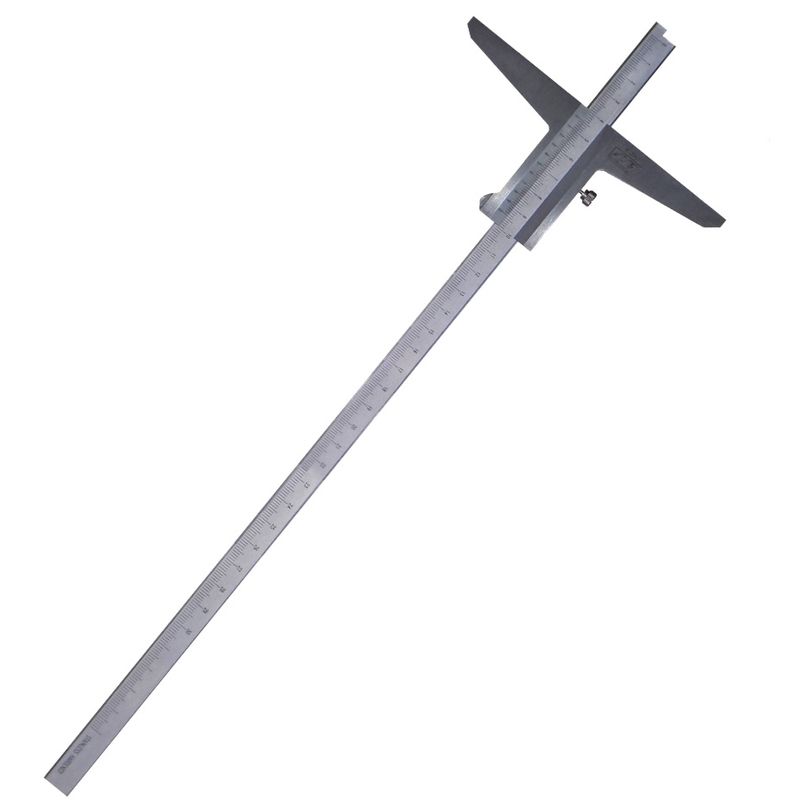 Calibro cinquantesimale in acciaio INOX temprato, con scala metrica e pollici, finitura opaca e ribassata. Sistema di bloccaggio del nonio con vite superiore e dispositivo di regolazione micrometrica. Precisione: cinquantesimale Dimensioni max di misura: 300mm