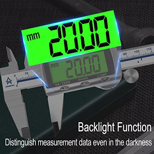 Calibro Digitale,ACEMETER Caliper metrico da 150 mm/6 pollice elettronico in acciaio inossidabile,con LCD Schermo Grande e Chiaro Più Preciso e batteria di ricambio,Design di protezione impermeabile