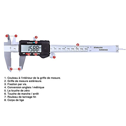 Il Pacchetto Include: 1x Calibro digitale, 1 x elettroni (inserito),1x Manuale utente(Inglese)