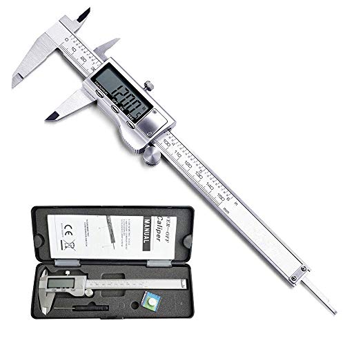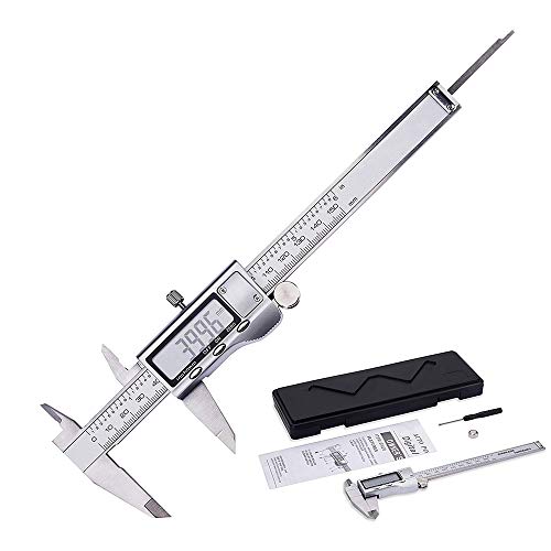 Calibro Digitale 150 mm / 6 Pollici Acciaio Inox Calibro a Corsoio, Calibri a Corsoio con Ampio Display LCD per Misurzione Esterna Interna Misurazione di Profondità e di Passo