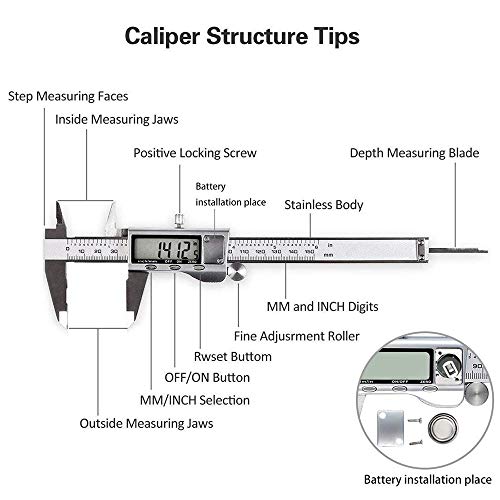 [Due Modalità di Misurazione]: La misurazione MM / INCH può essere facilmente convertita in un pulsante.Rende la misurazione più conveniente.
