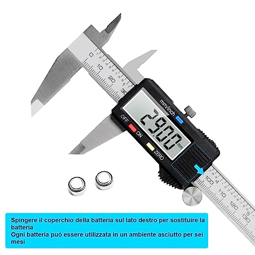 【 Pacchetto】 La confezione del prodotto contiene due batterie LR44, 1,5 V, manuale, calibro digitale. Abbiamo un team di assistenza post-vendita professionale, possiamo risolvere qualsiasi problema per te, per garantire che ogni cliente sia soddisfatto dei nostri prodotti
