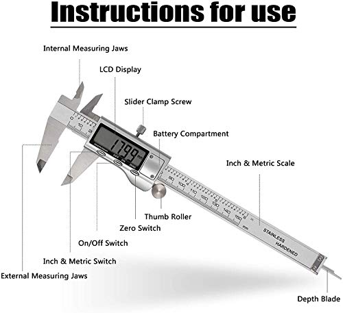 【Materiale ad alta qualità】Il calibro digitale professionale è realizzato in acciaio inossidabile, molto robusto e resistente che garantisce una lunga durata;