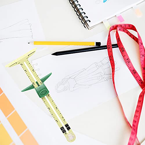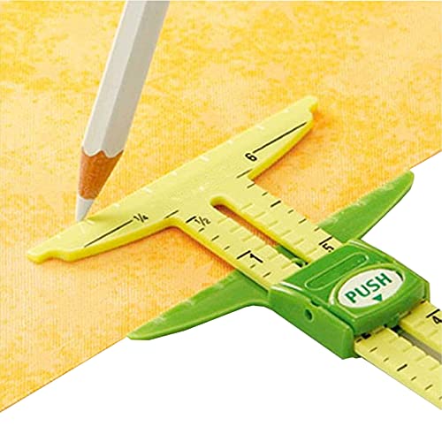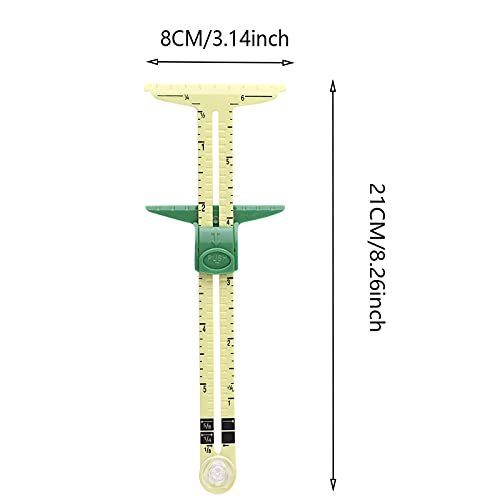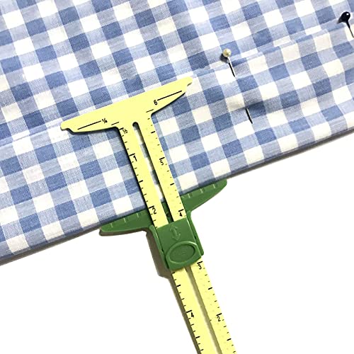 Caratteristiche pratiche: misuratore di scorrimento a forma di T Strumento di misurazione del cucito, con due sistemi di misurazione dei bordi che possono rendere facile e veloce l'aggiunta di margini di cucitura a motivi o linee di marcatura su tessuto.