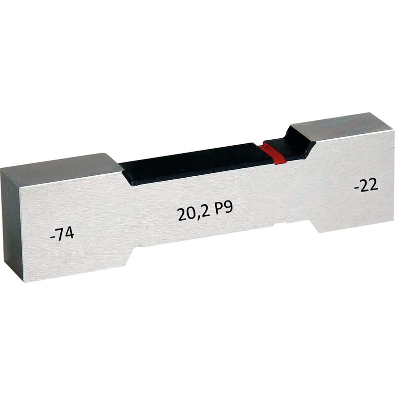 9 Calibri a tampone per controllo di scanalature e chiavette su alberi, dotati di lati passa/non passa. Lato passa con sovrametallo di usura a norma DIN 7164. Corpo del calibro in acciaio temprato. Per misura intermedia o tolleranza in cifre. Calibro a tampone piatto con misura intermedia e accoppiamento ISO, ad es. n. art. 484409 Dim. 15,8 M6. Uso: Per controllare gli accoppiamenti tra piani paralleli, per es. di scanalature o chiavette. Norma: Toleranzen und Abmaße nach DIN EN ISO 1938-1 und DIN 7164. Nota: Il codice misura del modello descrive la dimensione nominale in millimetri (mm). Dati tecnici Taratura L6 Tipo di prodotto Calibro a tampone piatti Norma DIN EN ISO 1938-1 Norma_ DIN 7164 Dimensione nominale, mm 3,001 - 5,999 Intervall: 0,001