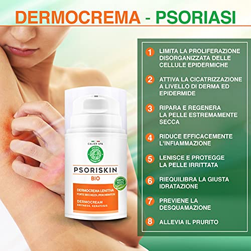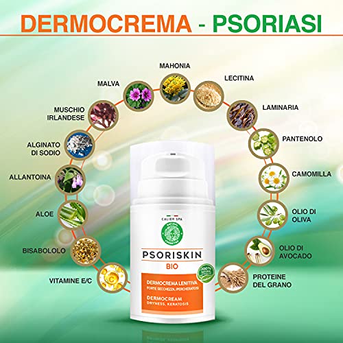 Calier Spa - Crema per Psoriasi con Aloe Vera, Allantoina e Pantenolo, Indicata per Alleviare il Prurito delle Pelli Secche, Arrossate e Irritate, Bio Certificata, 100% Made in Italy - 50 ml