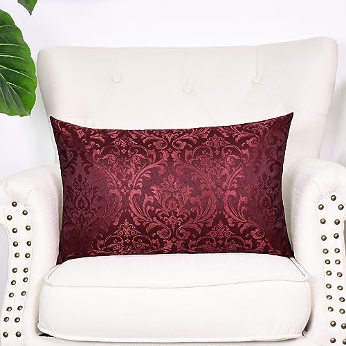 CaliTime Confezione da 2 federe per cuscini per divano, decorazione della casa, stile vintage damascato floreale brillante e contrasto opaco 30,5 x 50 cm, bordeaux