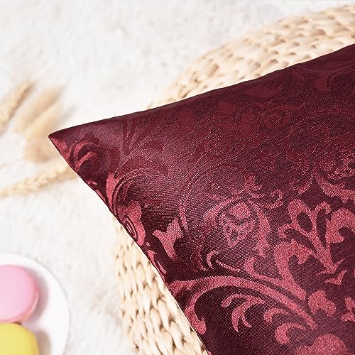 CaliTime Confezione da 2 federe per cuscini per divano, decorazione della casa, stile vintage damascato floreale brillante e contrasto opaco 40,5 x 40,5 cm, bordeaux