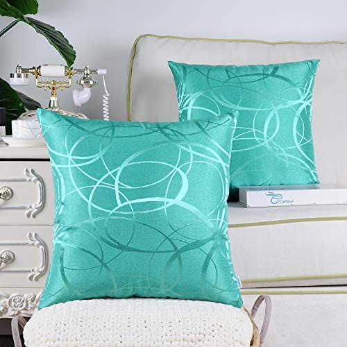 CaliTime Confezione da 2 Fodere per Cuscini Fodere per Cuscini Conchiglie per Divano Divano Decorazioni per la casa Moderne Lucide e Opache Cerchi Cerchi Anelli Geometrici 55 cm x 55 cm Turchese