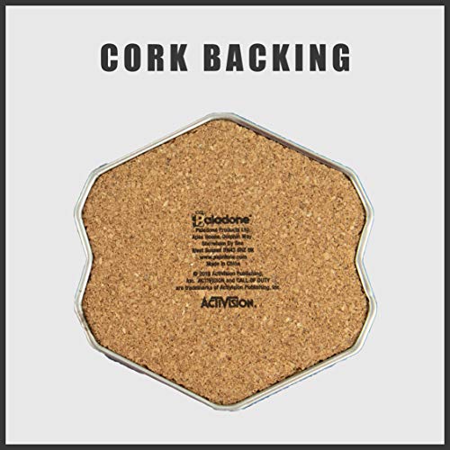 Licenza ufficiale: set di 4 sottobicchieri in metallo con retro in sughero con motivo stampato. Contiene una tazza di dimensioni standard. Ispirato ai giochi di successo, il set di sottobicchieri Call of Duty è un prodotto con licenza ufficiale.