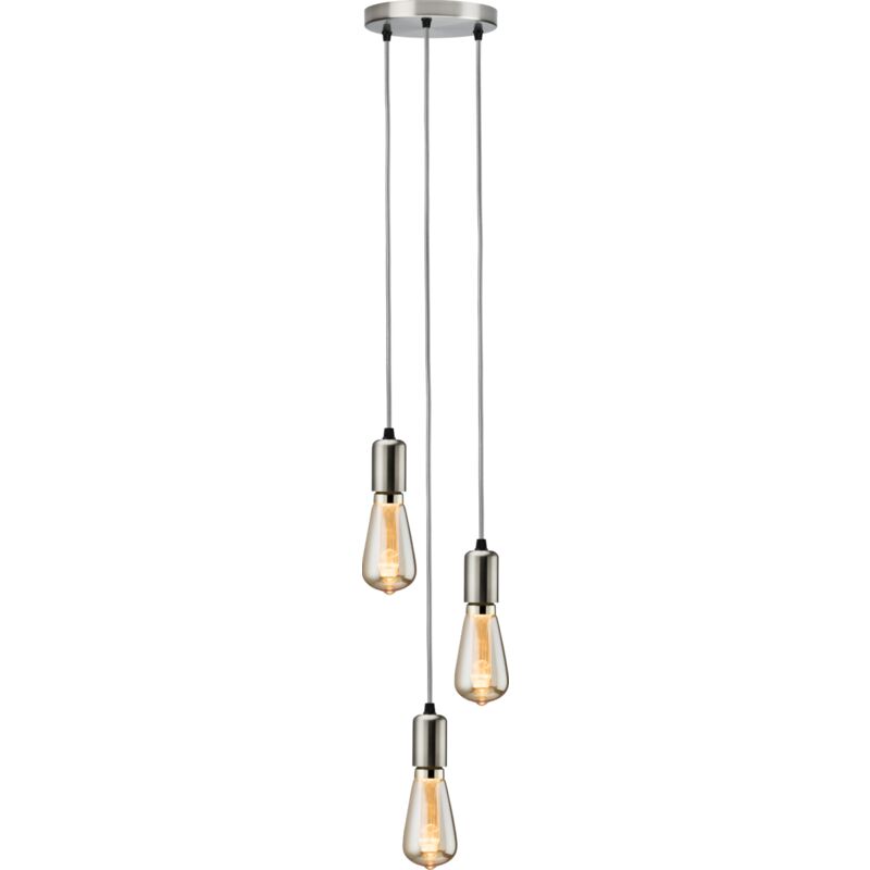 Knightsbridge CALLA - 230V E27 Sospensione moderna a 3 luci - Cromo spazzolato - CALCO3PBC | Finitura: cromo spazzolato | Materiale: acciaio stampato | Classificazione IP: IP20 | Proiezione: 193 cm | Diametro: 20 cm | Tipo di lampada: E27 | Lampadina inclusa: No | Dimmerabile: Sì | Peso: 0,86 kg | Potenza (massima): 3x40W