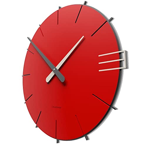 CalleaDesign Mike 42 cm - Grande Orologio da Parete Design Semplice e Rotondo, Perfetta Leggibilità delle Ore, Meccanismo Tedesco Quarzo Silenzioso Rosso Grigio Quarzo Bianco Legno