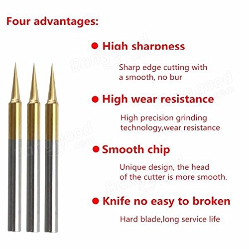 Calli 5pcs 0.1 millimetri di 15 gradi piano di titanio attrezzo del router di CNC carburo rivestito fondo pcb po'incisione