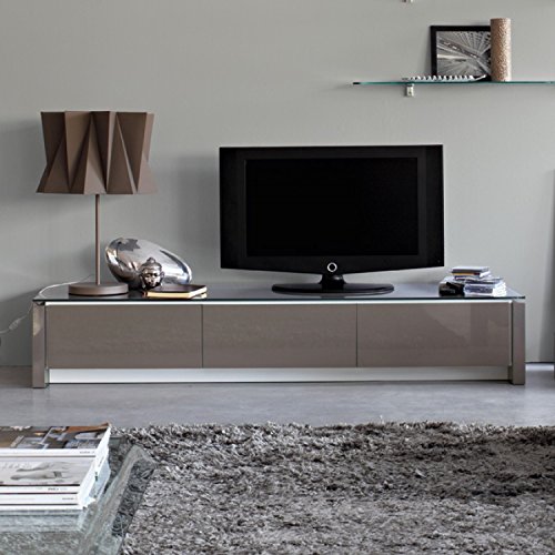 Calligaris - Mobile Porta TV Mag - Finiture Interne: Nobilitato Bianco P262 - Finitura Base: Vetro Temprato Serigrafato Nero GB - Misure: 133x52x35 - Struttura: Laccato Bianco Lucido P64 - Tipo: 2 Cassetti