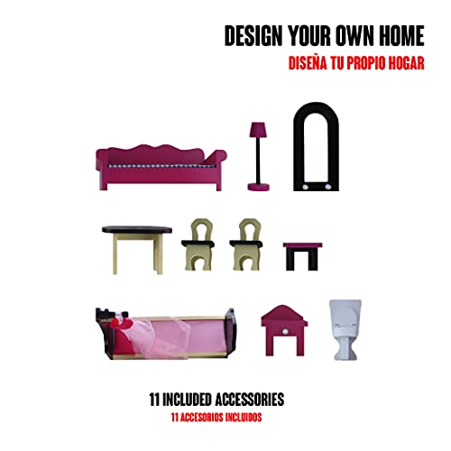 Calma Dragon Dollhouse W06A101, in Legno con mobili Inclusi, Mansion for Dolls, 3 Piani per Bambole 30cm, con Ascensore e 11 Accessori, 121cm di Altezza