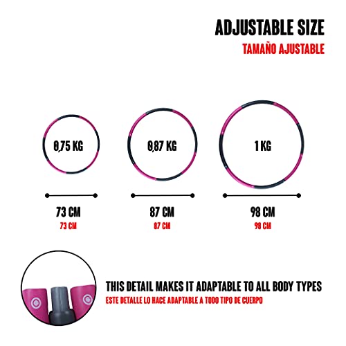 DIMENSIONE REGOLABILE: L'Hula Hoop è ideale sia per bambini che per adulti. Il suo design staccabile in 8 pezzi permette di regolarlo alla misura desiderata e di adattarlo a diversi corpi. Può essere assemblato e personalizzato con 6, 7 o 8 pezzi a seconda del diametro desiderato.