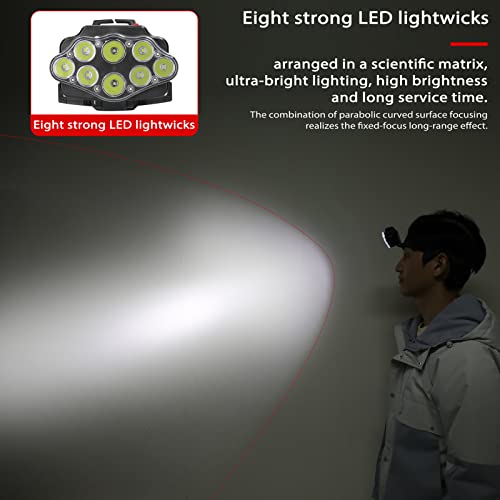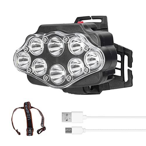 CalmGeek Lampada Frontale a 8 LED, Lampada Frontale Ricaricabile 1000 LM, Batteria Display per Esterni Campeggio Pesca Luce Frontale a LED Impermeabile Ricaricabile USB