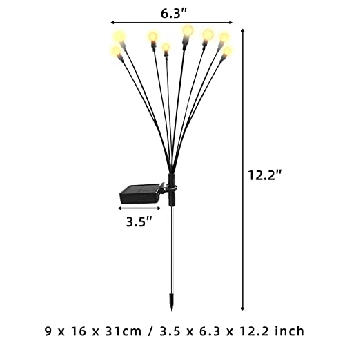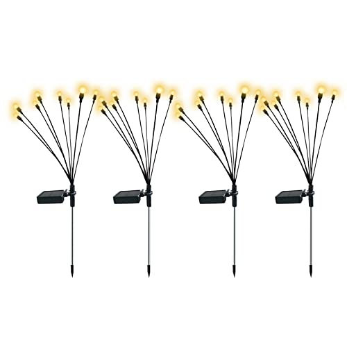 CalmGeek Lucciola Solare Luce Calda Lampada, 4 Pezzi 6 LED Luci Solari da Giardino Esterno, Luci Solare Esterno, Decorazione Giardino Firefly Solar Pathway Lights per Patio Giardino Balcone (4 Pezzi)
