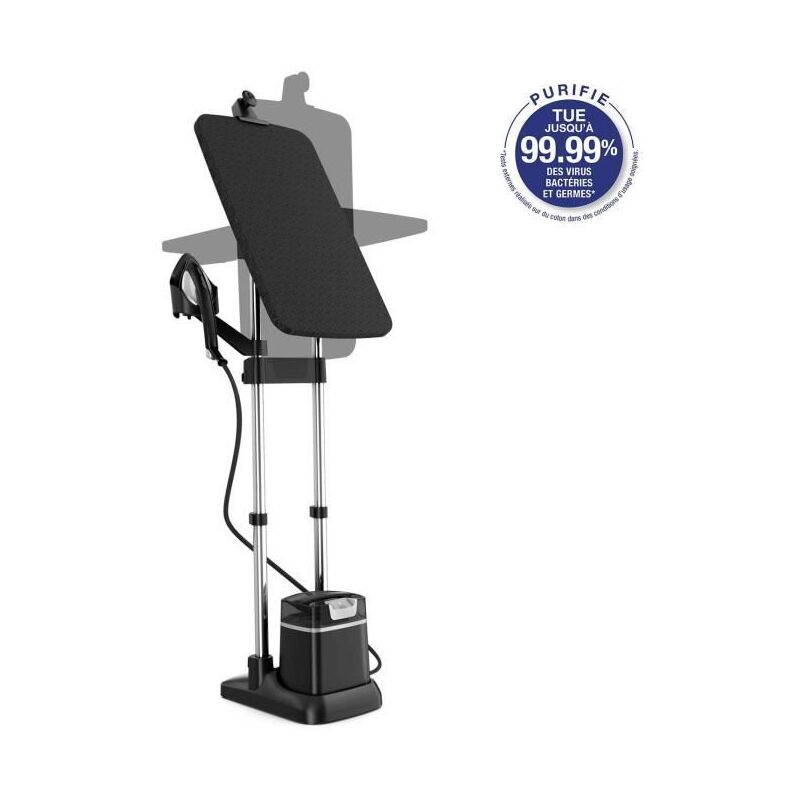 IXEO+ di Calor è la soluzione per stirare e vapore tutto in uno! La Smartboard può essere utilizzata in diversi modi: vaporiera verticale, stiratura orizzontale, posizione di inclinazione di 30°. La sua potenza del vapore igienizza ed elimina fino al 99,9% di virus e batteri* (tecnologia vapore Twin Boiler)