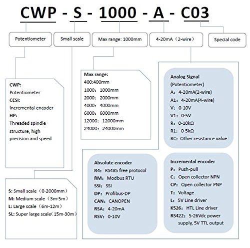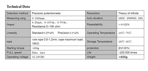 CALT 1000mm Gamma di Misura Analogico Potenziometro Draw filo Sensore di spostamento 0-5V