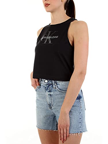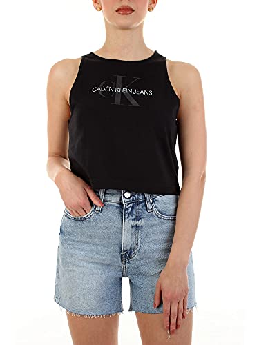 Calvin Klein Canotta con Logo Lucido in Cotone Biologico (Nero, XS)