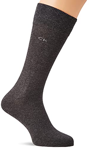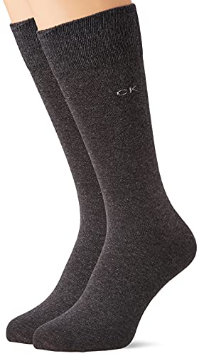 Calvin Klein Casual Flat Knit Cotton Men's Crew Socks 2 Pack Calzino Classico, Dark Grey Melange, 43/46 Uomo